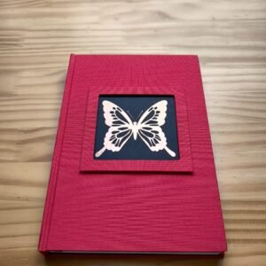 Miolo: 96 folhas – confeccionado em papel pólen 90 gr, sem pauta, com fita marcadora de páginas e cabeceado.