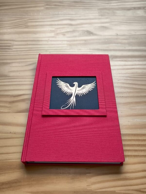 Capa confeccionada em cartonagem, revestida em Saphir e personalizada com o símbolo escolhido perfeitamente emoldurado.